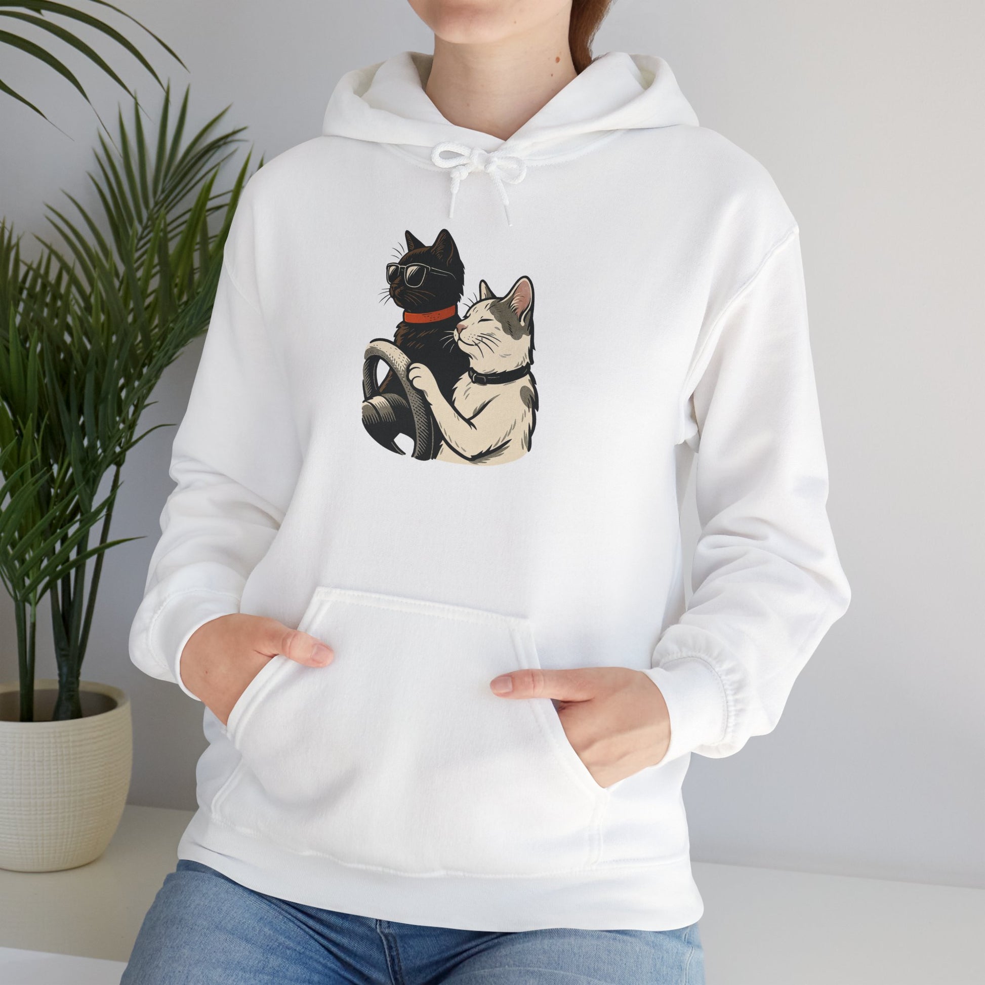 This unisex heavy blend hooded sweatshirt is relaxation itself. Made with a thick blend of cotton and polyester, it feels plush, soft and warm, a perfect choice for any cold day. In the front, the spacious kangaroo pocket adds daily practicality while the hood's drawstring is the same color as the base sweater for extra style points.